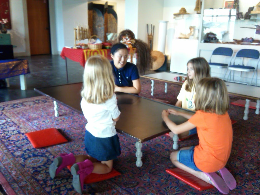 This was one of my favorite places. We went to the Texas State Museum of Asian Cultures. They have a class every Saturday called Fly Me to Asia. This day the we learned all about the country of Indonesia. The girls spent a few hours with two very nice people from Indonesia and one lady from Japan. They were all so excited to share their culture with the kids.